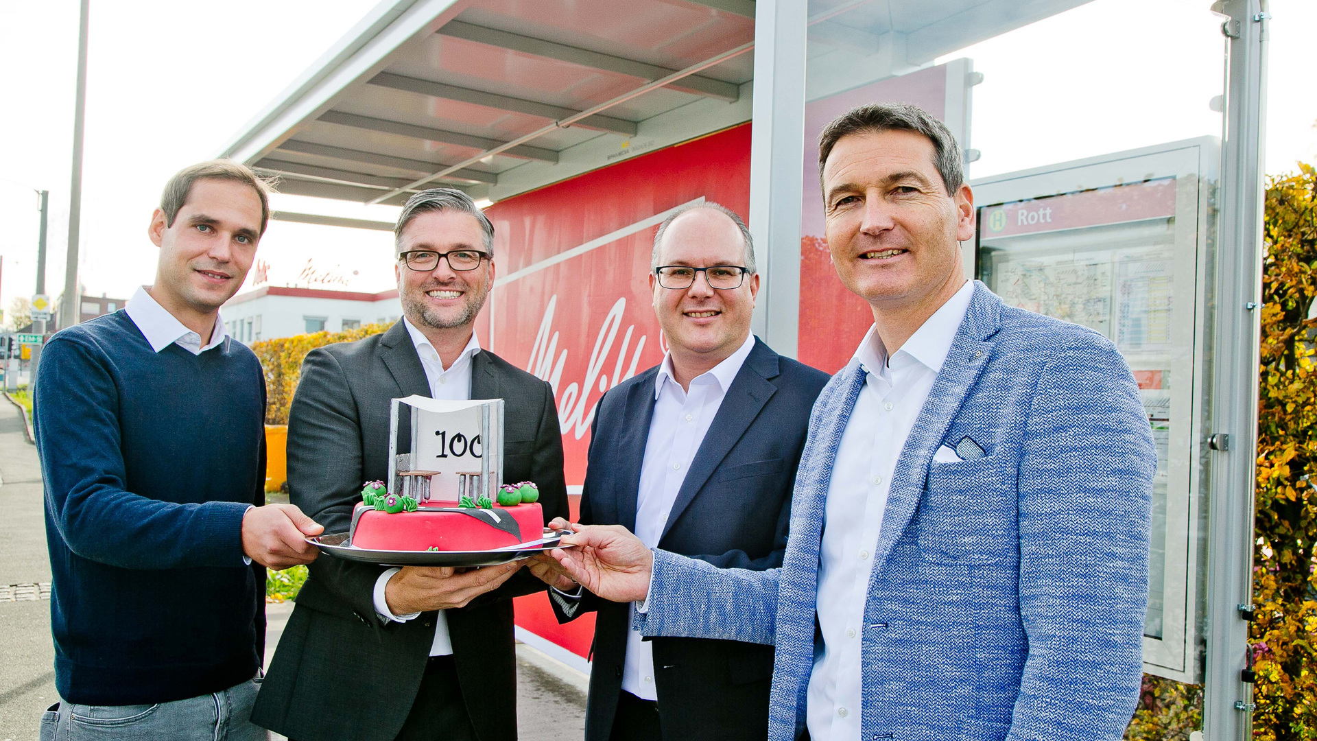 Außenwerbe-Spezialist EPAMEDIA baute in der Mozartstadt in Zusammenarbeit mit der Salzburg AG die 100. Wartehalle. Die feierliche Einweihung wurde gemeinsam mit Grundstückseigentümerin Melitta begangen.